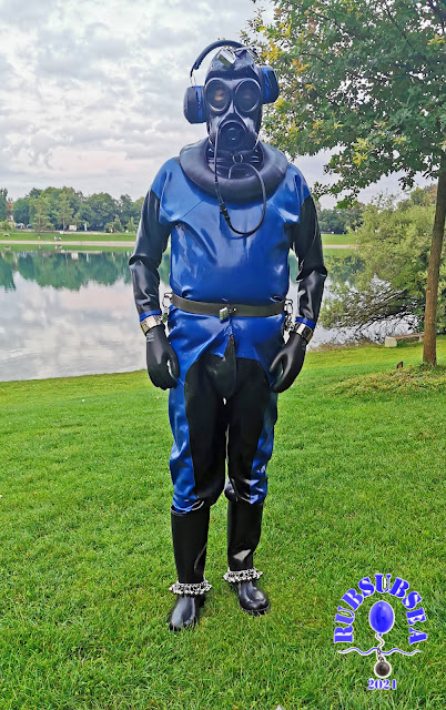 Kurz frischgemacht schlüpfte ich in mein Outfit und überraschte Rub. Er hatte gar nichts mitbekommen, da die Atemgeräusche in der Gasmaske schon laut und die Mickeymäuse auch effektiv sind.
